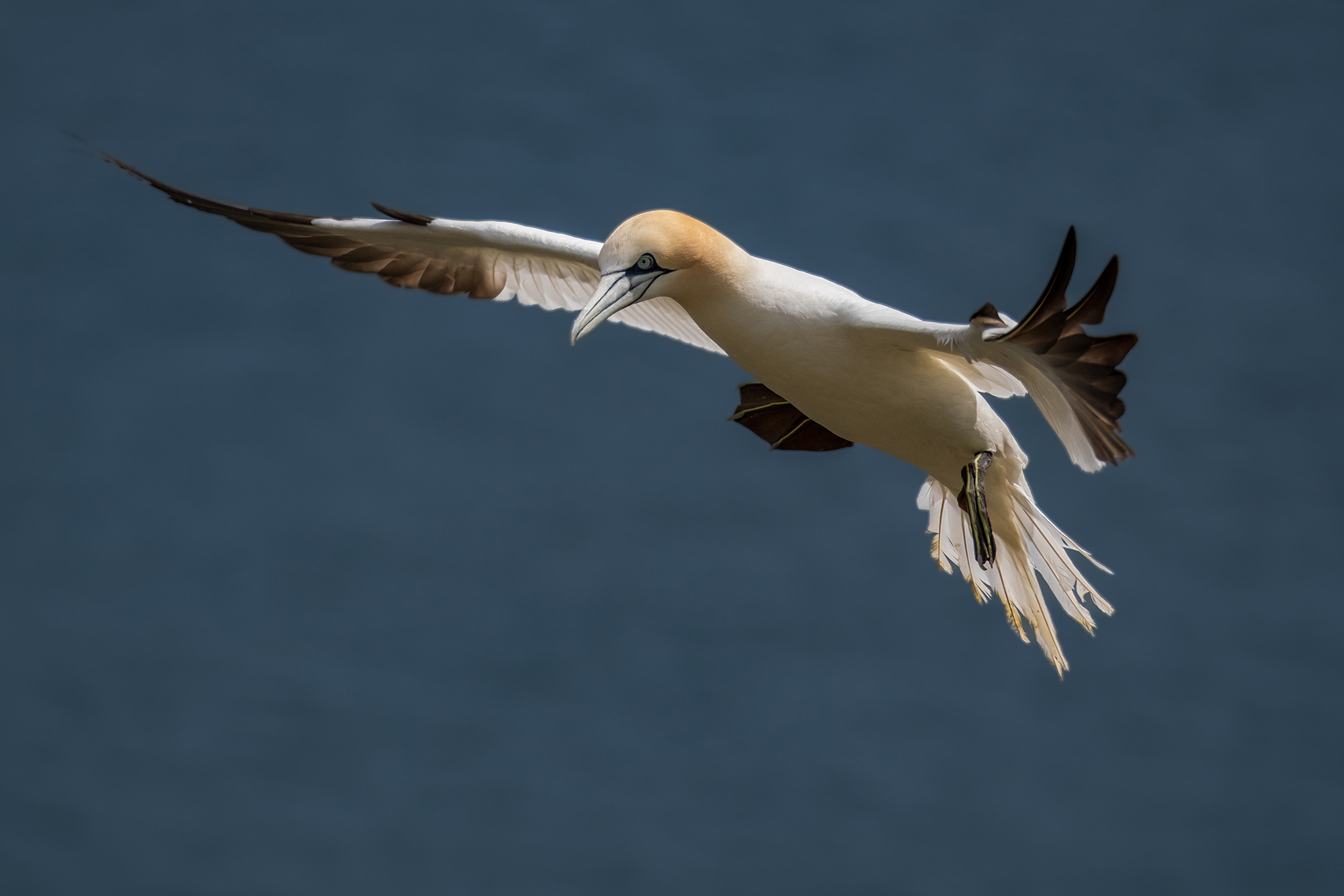 La sula è il più grande uccello marino della regione del Mare del Nord. La colonia di sule sullo Scottish Bass Rock esiste da secoli ed è da questo scoglio che l'uccello ha preso il nome scientifico (sula bassana) e l'antico nome olandese (bassaanse gans). Dopo che la femmina ha deposto l’uovo entrambi i genitori, a turno, lo covano in un modo insolito: usando il calore dei loro piedi. La cura extra è necessaria, poiché le sule depongono solo un uovo all'anno. Il piccolo viene nutrito per tre mesi. Le sule giovani sono facili da riconoscere per il loro piumaggio bruno-grigiastro con macchie bianche. Per catturare la sua preda, l'animale si tuffa direttamente in acqua da un'altezza di 30 metri. Ripiegando le ali all'indietro e allungando il becco verso il basso, raggiunge una velocità prossima ai 100 chilometri orari. L'enorme impatto con l’acqua viene assorbito da un cranio rinforzato e da un cuscino d'aria protettivo sotto la pelle, una specie di airbag. Una volta sott'acqua continua la sua caccia, prima tuffandosi per i primi quattro metri e poi nuotando dietro al pesce spaventato. L’aspetto più affascinante del loro comportamento tuttavia è per me il poetico rituale di coppia: quando un membro della coppia è in procinto di prendere il volo “saluta” protendendo il becco verso l’alto e alzando prima una zampa e poi l’altra. Quanto torna al nido i due uccelli rinnovano il proprio legame con un’elaborata danza in cui i becchi si incrociano, si sfiorano e le teste vengono ruotate da un lato all’altro, prima che ciascun animale si prenda cura delle piume del partner.
