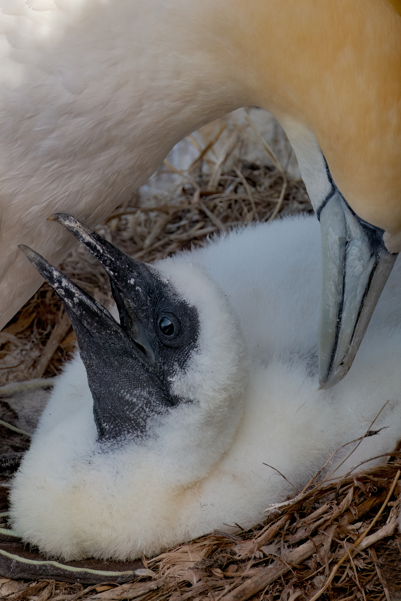 I am also passionate about northern gannets. I first had the chance to observe them in Brittany about twenty years ago, on Rouzic Island, which is part of the Sept Îles nature reserve off the coast of Perros-Guirec. Since then, I’ve returned several times, and it’s a place I deeply love. Access to the island is strictly prohibited to protect the colony, but it can be approached by boat to admire the spectacle from the sea. On this rocky islet live 18,000 northern gannets (Fous de Bassan), the only colony in Europe of these pelagic birds, which return each February to nest along the Pink Granite Coast after spending the winter under the African sun. Every year, the gannets come back from February until the end of summer for their breeding season.