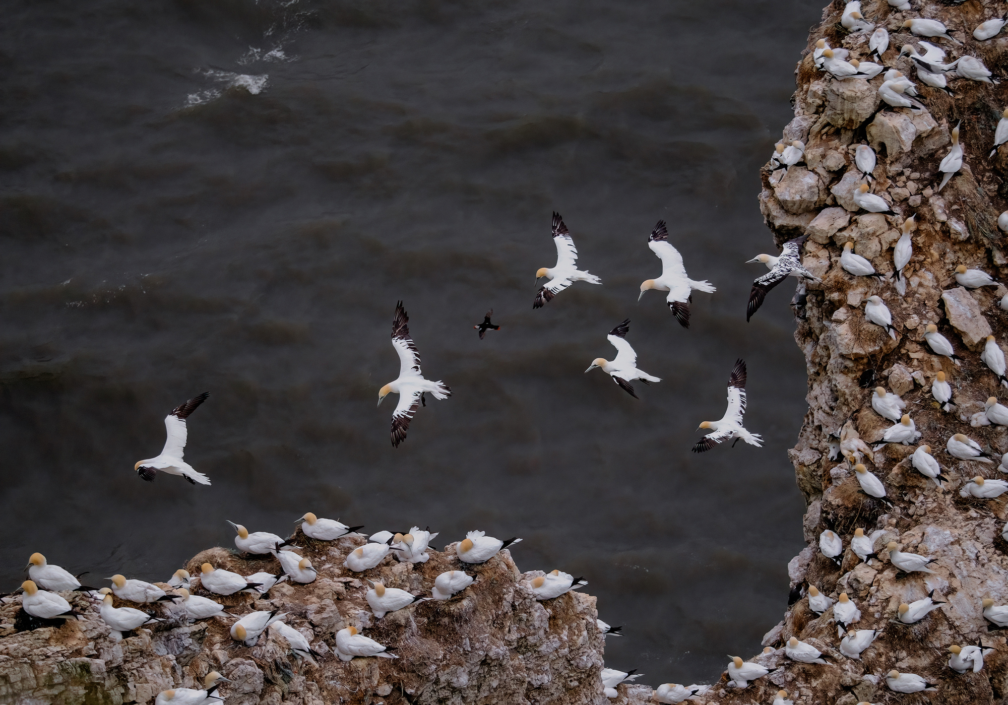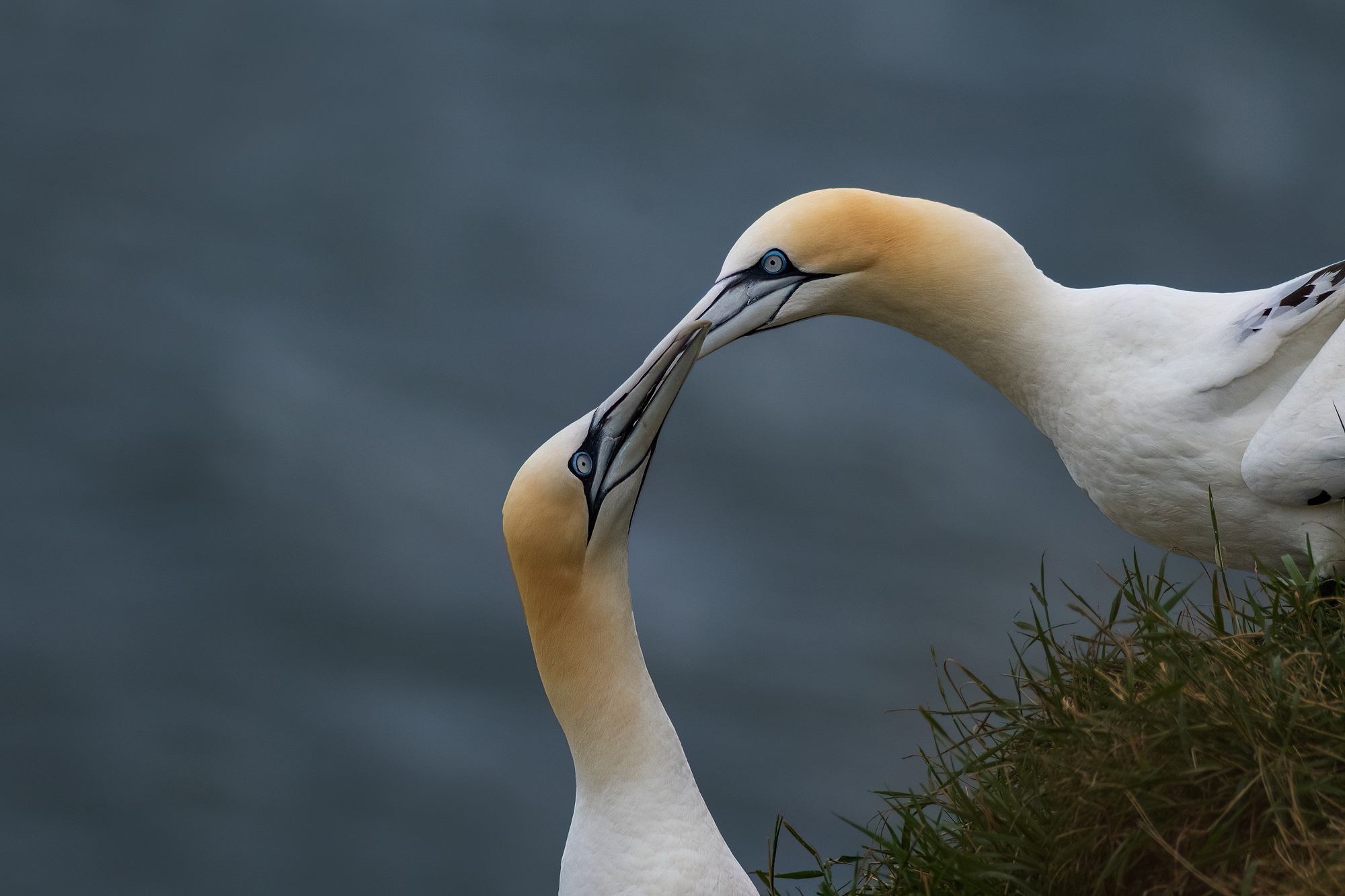 Sono sempre stato affascinato dai gannets, “sule” in Italiano, per via della loro straordinaria bellezza e del loro elaborato rituale amoroso. Questi meravigliosi uccelli hanno linee e colori che li rendono un soggetto fotografico straordinario. In più, le coppie sono monogame e rinnovano il proprio legame con elaborati rituali durante i quali i due uccelli incrociano il becco, puntandolo verso l’alto ed effettuando una vera e propria danza, prima di prendersi vicendevolmente cura del partner. È una incredibile danza d’amore, uno spettacolo della Natura che da tempo sognavo di riprendere. L’occasione si è presentata nel Luglio del 2022 e non ho esitato a fare i biglietti e pianificare una settimana intera di fotografia sulla costa orientale dell’Inghilterra, per la precisione sulle scogliere di Bempton Cliffs.