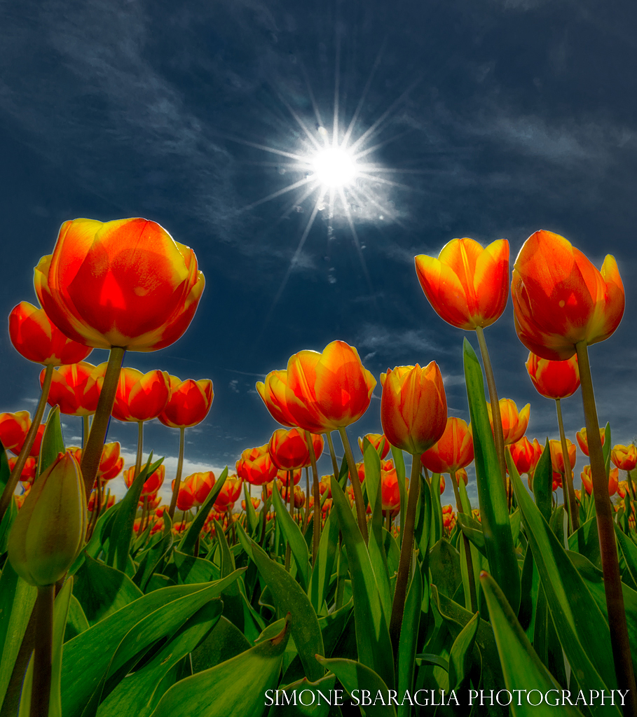 E ancora: “Semplicemente intitolate Tulip Fields, la serie mostra l’esperienza di Sbaraglia come fotografo naturalista nell’esaminare le proprietà geometriche delle piante, e il valore artistico dei paesaggisti che hanno seminato la moltitudine dei tulipani”.