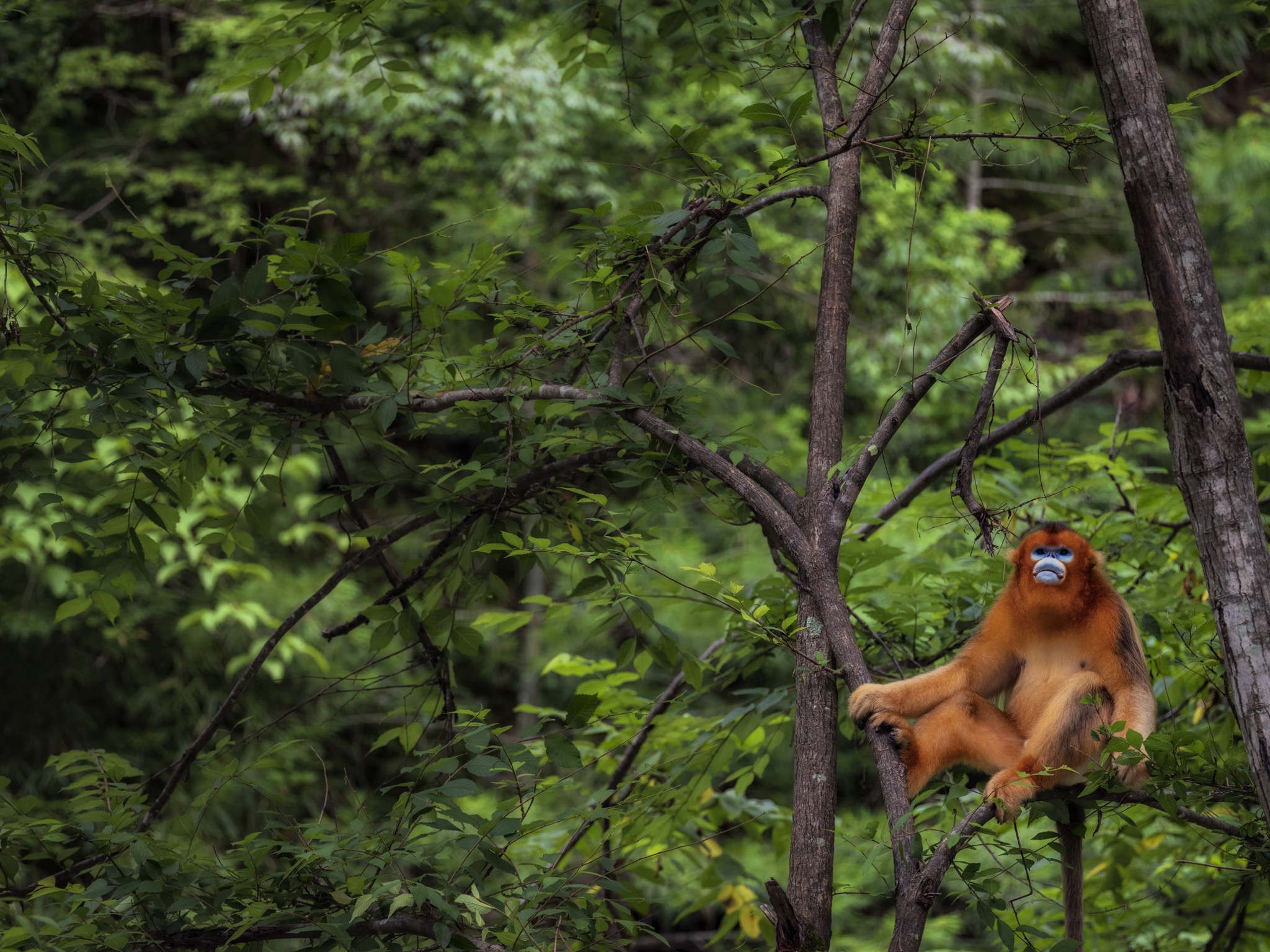Nell’isolamento delle vette, a 3400 metri di altitudine in foreste di conifere e latifoglie decidue coperte di neve per metà dell’anno, il rinopiteco dorato ha trovato il suo habitat.
