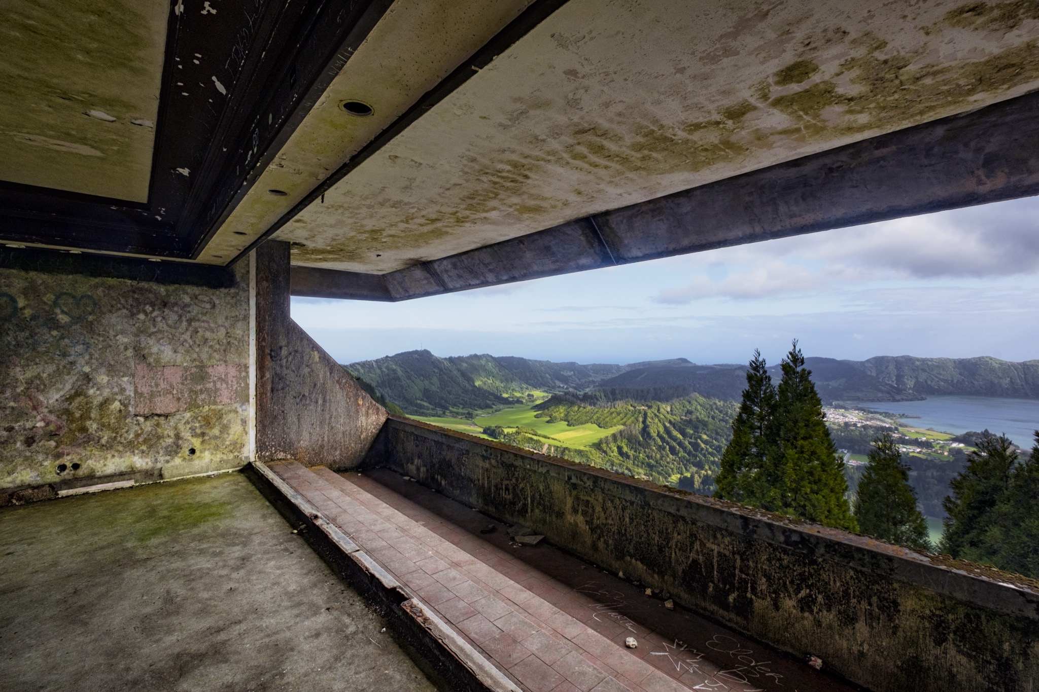 Degno di nota sull’Isola si São Miguel è il Miradouro da Vista do Rei, luogo panoramico di incantevole bellezza. Arrivando qui in un giorno di sole, evento molto raro in questa parte dell’isola, si può cadere nell’inganno di essere giunti in uno dei posti più riposanti del mondo. Così forse proprio in un giorno di sole alla fine degli anni ’70, a qualcuno venne l’dea di costruire qui un sontuoso hotel 5 stelle con delle viste mozzafiato e ogni lusso a disposizione degli ospiti. Inaugurato nell’aprile del 1989, il Monte Palace Hotel rappresentava il fiore all’occhiello dell’accoglienza turistica nelle Azzorre, ma dopo soli 19 mesi l’hotel chiuse i battenti, a causa dello scarso afflusso di villeggianti, scoraggiati dal luogo remoto e dal clima piovoso. Dal 2011 l’edificio è in stato di totale abbandono e i lussuosi arredi sono probabilmente finiti a casa di qualche scaltro avventore. Oggi l’hotel è una meta turistica ambita, anche se entrare nel rudere può rivelarsi molto pericoloso, oltre ad essere illegale.