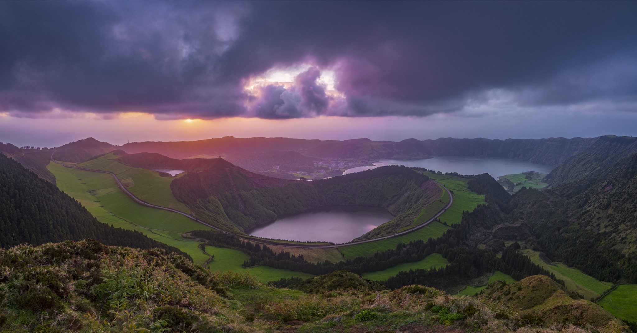 L’ultimo tramonto europeo si tuffa nel mare delle isole Azzorre. Per più di cinquecento anni, tutti i navigatori sono passati per queste isole, dagli avventurieri in cerca di fortuna ai balenieri, dai grandi piroscafi pieni di emigranti ai viaggiatori in solitaria. Oggi, nonostante il massiccio intervento dell’uomo, le Azzorre sono in grado di offrici uno scenario bellissimo.