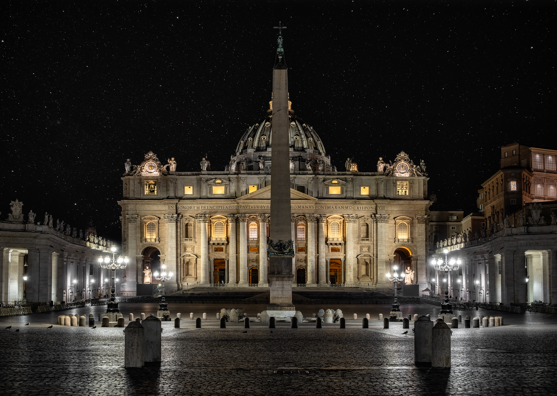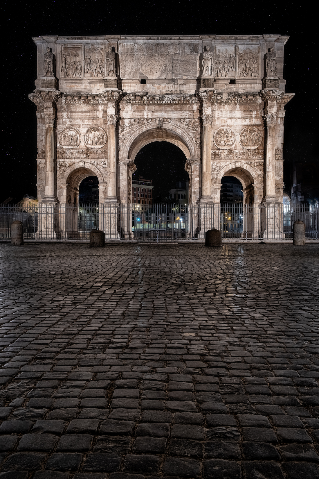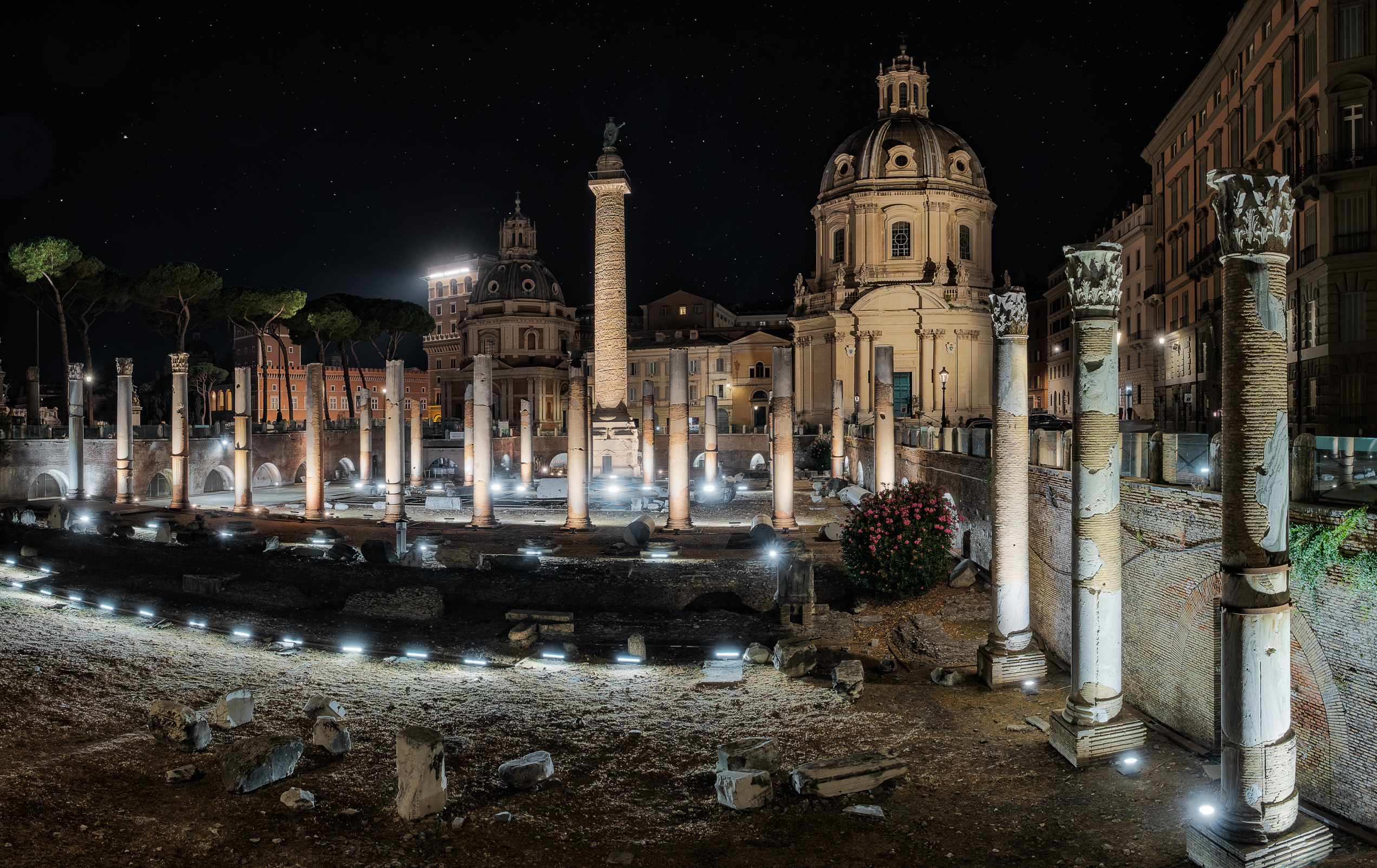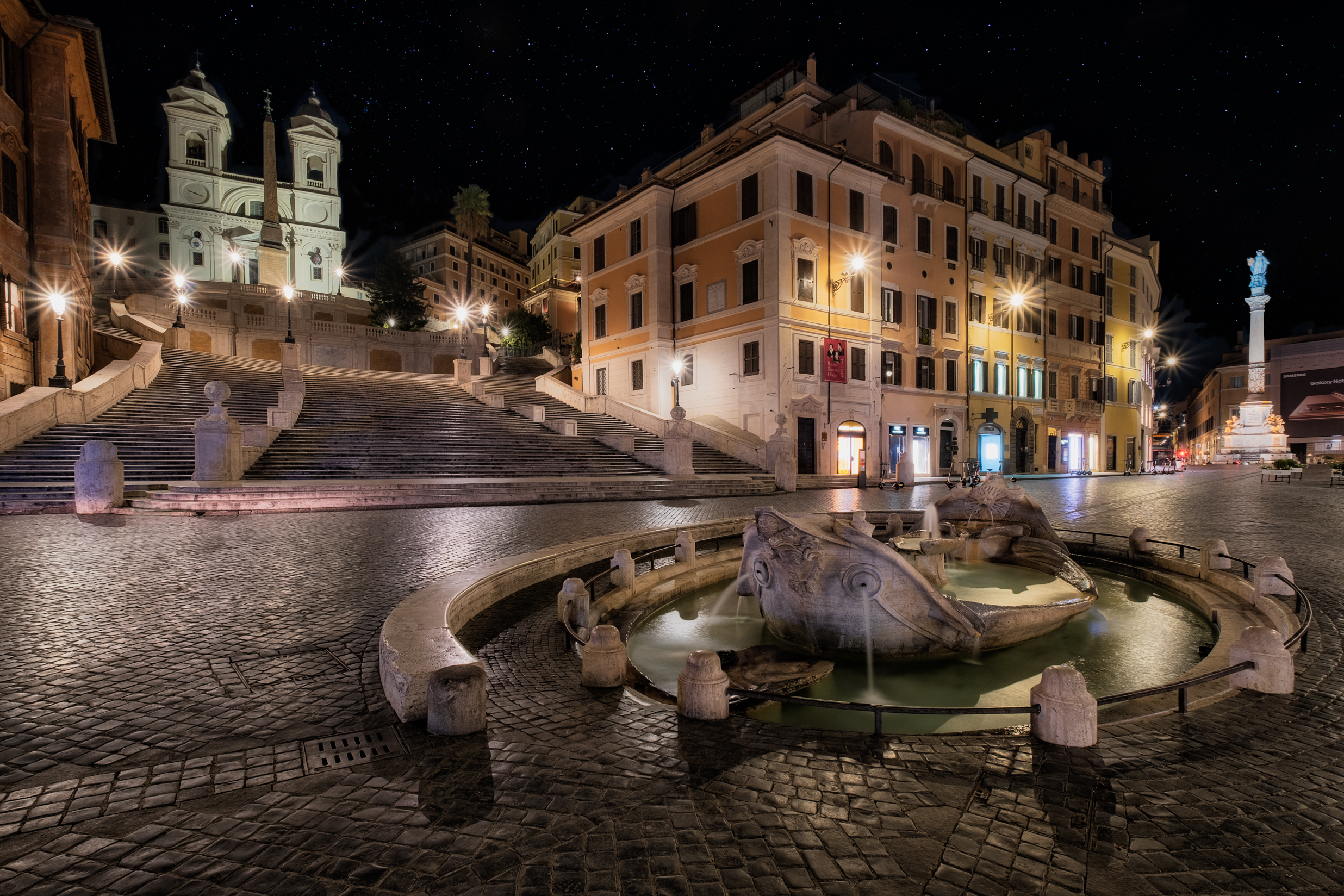 L’approccio che ho seguito è stato di pianificare molto accuratamente i luoghi in cui realizzare le immagini. Come mio solito ogni sessione fotografica è stata preceduta da una lunga fase di studio delle immagini satellitari, per definire il posto migliore in cui piazzare il treppiedi. In alcuni casi è stato necessario un sopralluogo diurno, per identificare esattamente l’inquadratura. Non amo girare a caso cercando spunti fotografici, non fa parte del mio modo di lavorare. Al contrario preferisco pianificare ogni dettaglio ed andare a realizzare l’immagine solo quando è tutto chiaro nella mia mente. La fase di realizzazione degli scatti è stata quindi molto rapida: nella maggior parte dei casi mi sono limitato a recarmi nel luogo accuratamente scelto e realizzare un singolo bracketing da 5 scatti (talvolta 7) con una differenza di uno stop di esposizione tra uno e l’altro, per assicurarmi di catturare l’intera gamma dinamica della scena. Ho cercato di lavorare molto rapidamente, anche perché non è sempre consentito utilizzare il treppiedi. Lo scatto della Fontana di Trevi, ad esempio, ha richiesto molti tentativi perché ogni volta mi veniva chiesto di non utilizzare il treppiedi a meno che non mi fossi procurato un’autorizzazione all’occupazione del suolo pubblico (purtroppo questo è quanto prevede la normativa