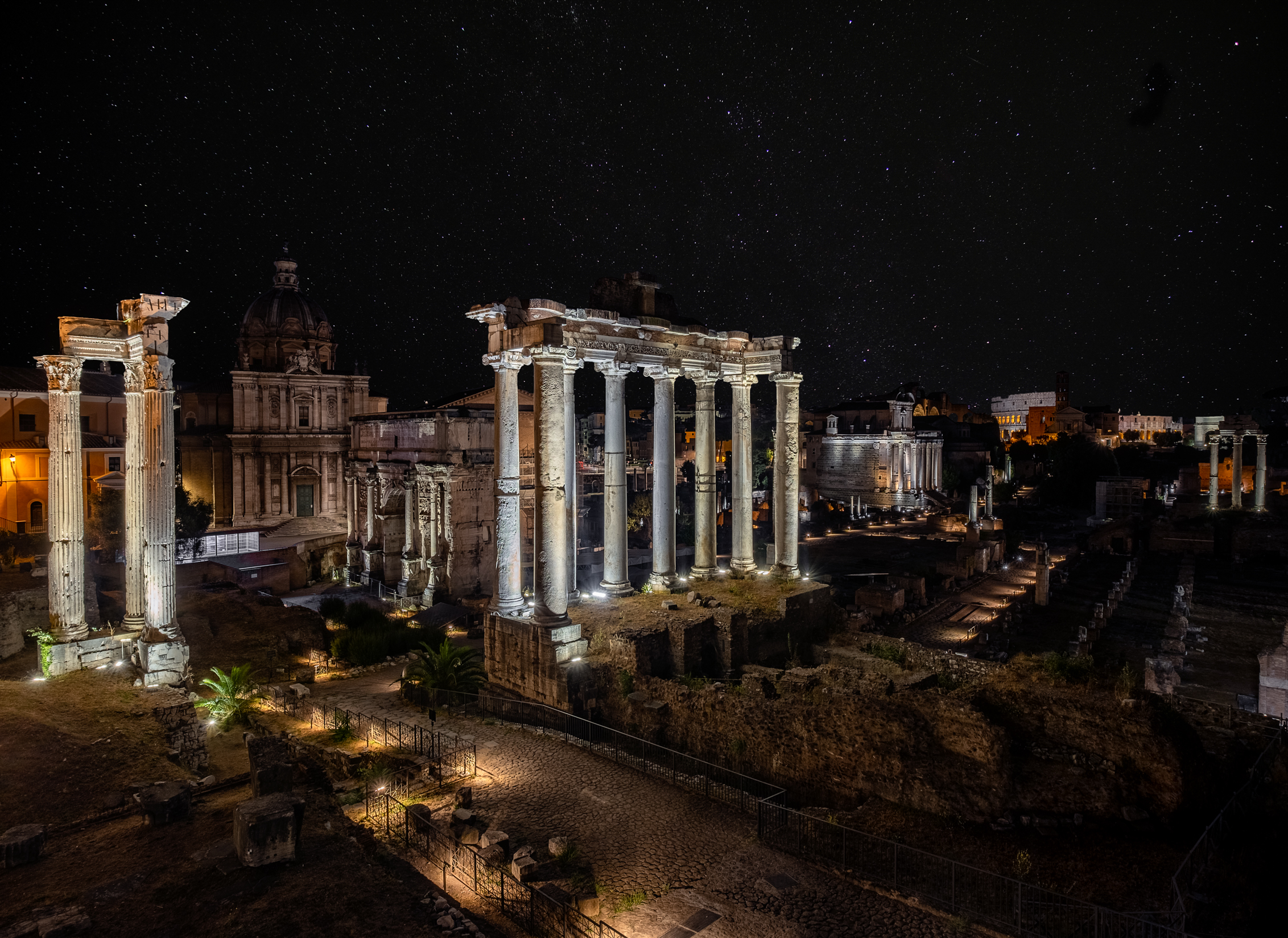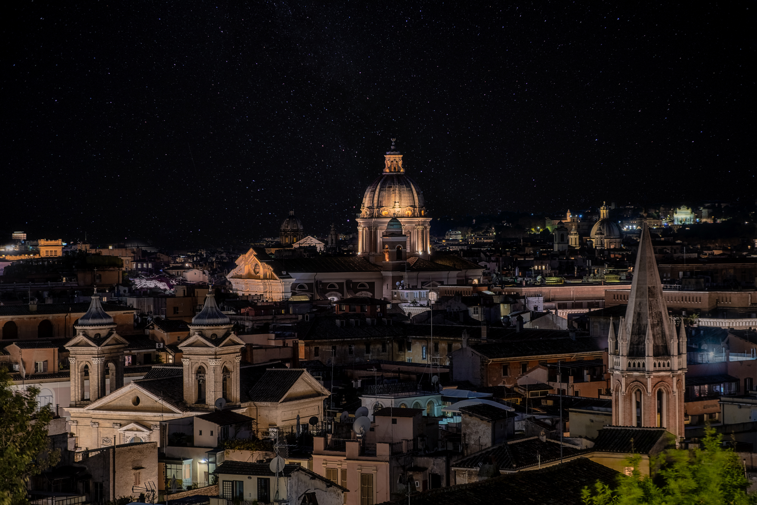 le stelle di ogni immagine fossero quelle “autentiche” del luogo, anche se fotografate separatamente. Ciò è raramente stato possibile, nella maggior parte dei casi ho fotografato in cielo stellato in luoghi diversi, il più possibile privi di inquinamento luminoso, sia a Roma che fuori Roma.