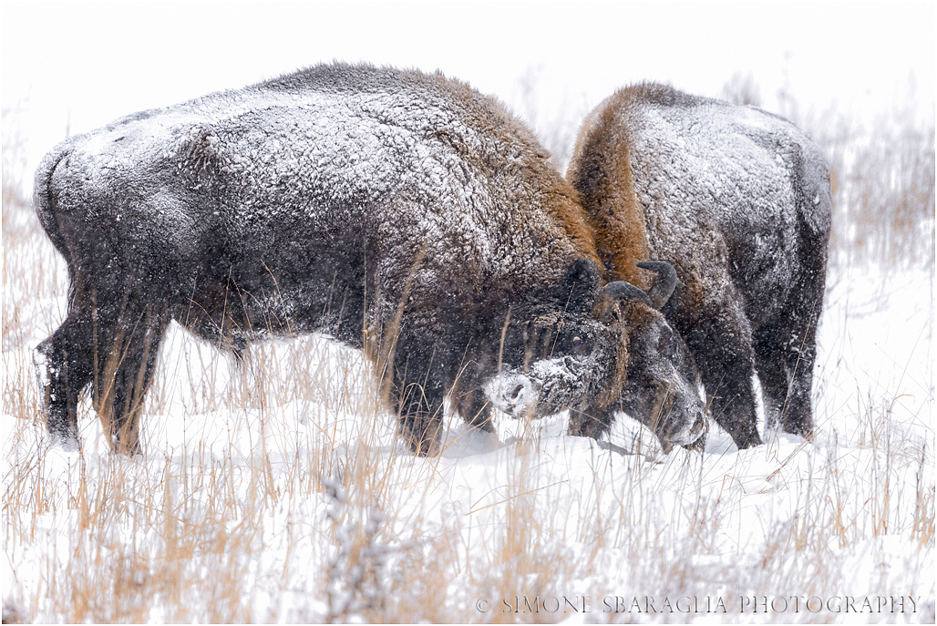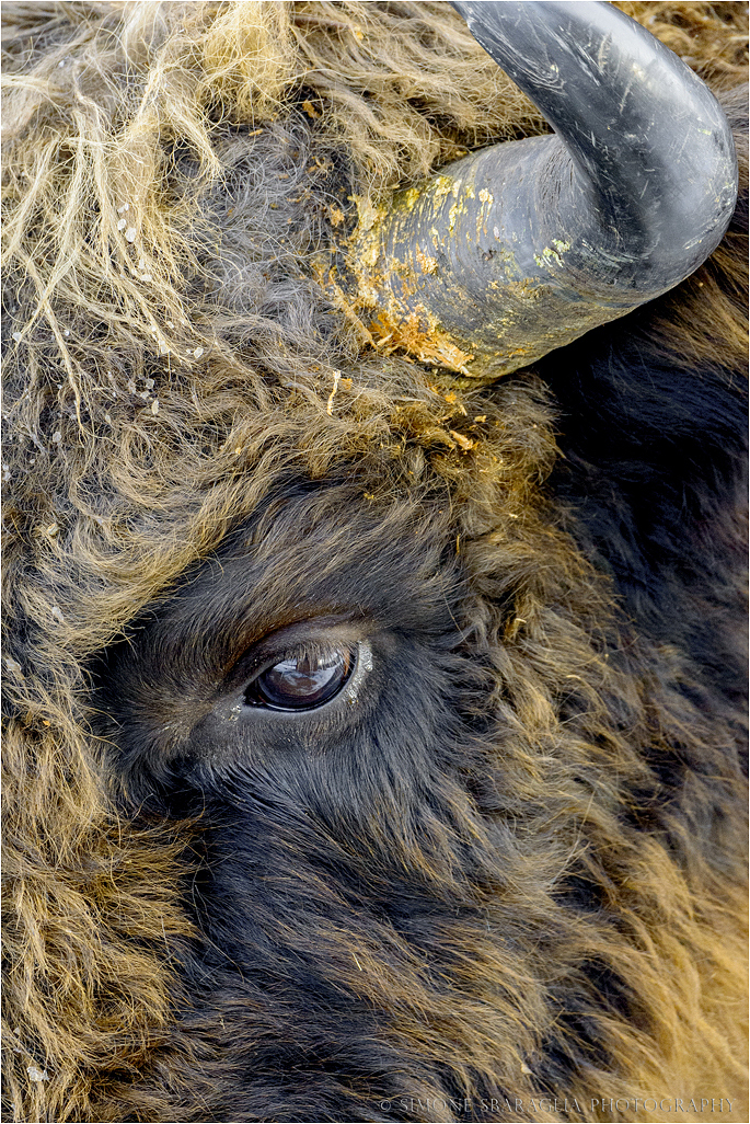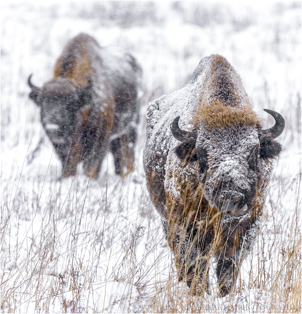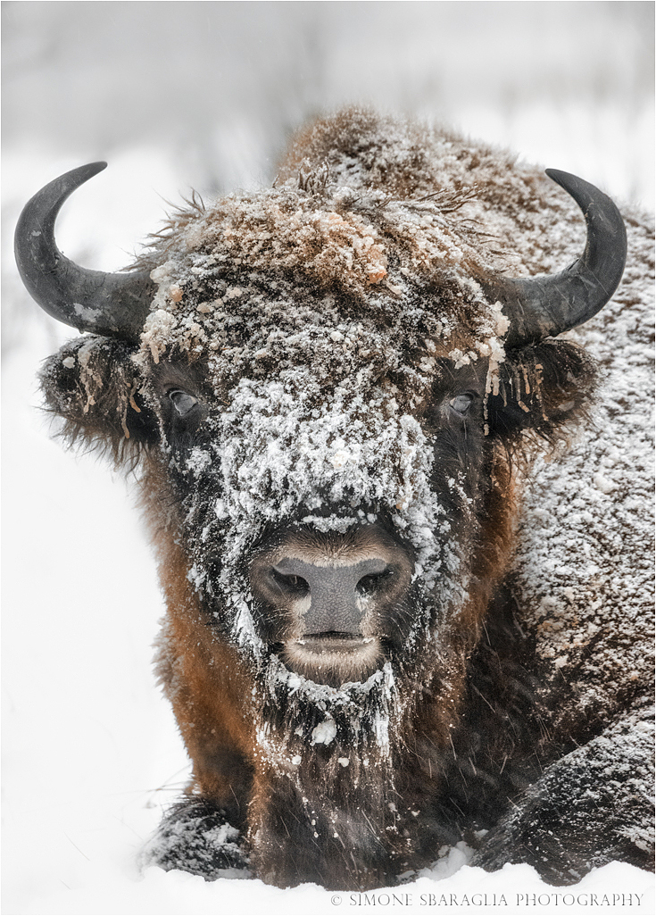 Ma la sua maestosità non è nulla di fronte alle armi dell’essere umano che da secoli considera il bisonte una preda ambita tanto per le carni quanto per il pellame e per il corno, ma soprattutto per la bramosia di essere riusciti a dominare un essere enorme.