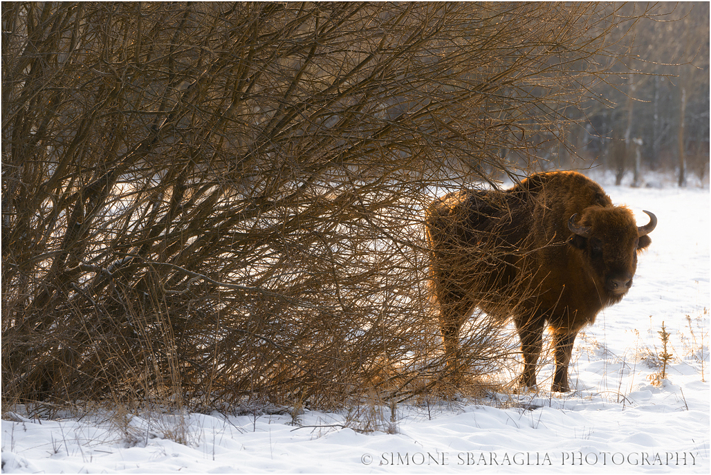 La ricerca del bisonte è un momento estramamente delicato, si cammina nella foresta percorrendo sentieri obbiligati, è vietato allontanarsi. Procedere lentamente nel silenzio profondo, immersi nel freddo e nalla neve richiama sensazioni primordiali. Sembra che il tempo si sia fermato, che la "selva oscura" sia la stessa, immutata sin dalla fine dell’ultima glaciazione.