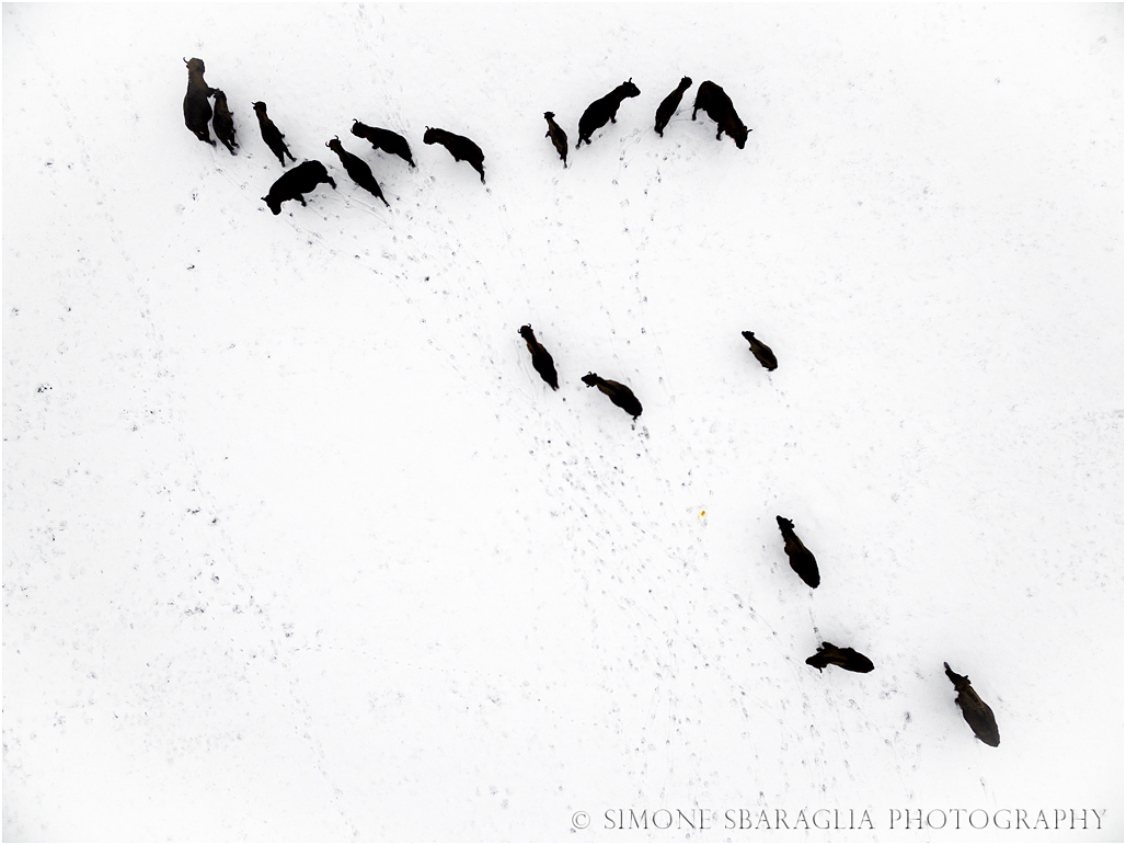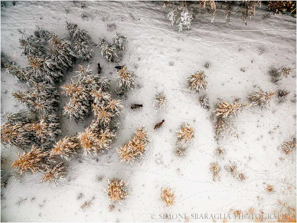 E così per catturare qualche istante della loro vita selvaggia, cercando di non disturbarli troppo, è necessario avvicinarsi sottovento, la neve per fortuna attutisce il rumore dei passi. Avvicinandosi ci si accorge che la loro è una vita braccata.
