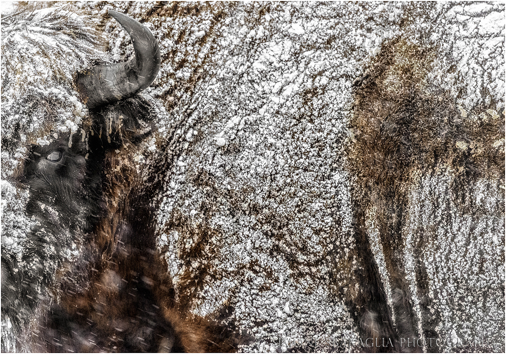 L'incontro con il bisonte però ci riporta immediatamente alla consapevolezza che la storia abbia decisamente modificato il comportamento di questi animali vittime nei secoli dello sterminio umano. Basta incrociare un loro sguardo per comprendere quanto ancora sia radicata la paura nei nostri confronti.